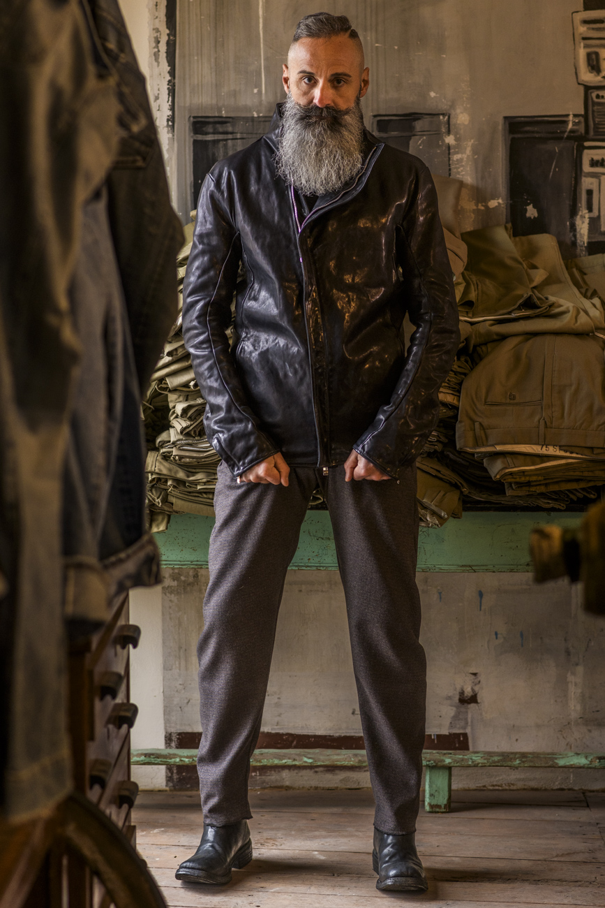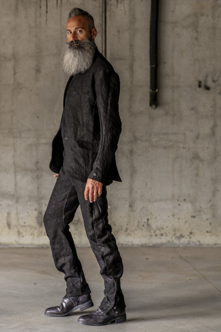 LINEN 100%+HORSE LEATHER PANTS MP-2C UNLINED