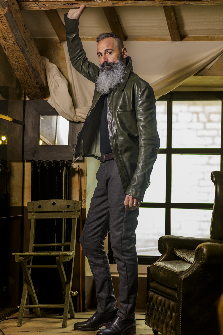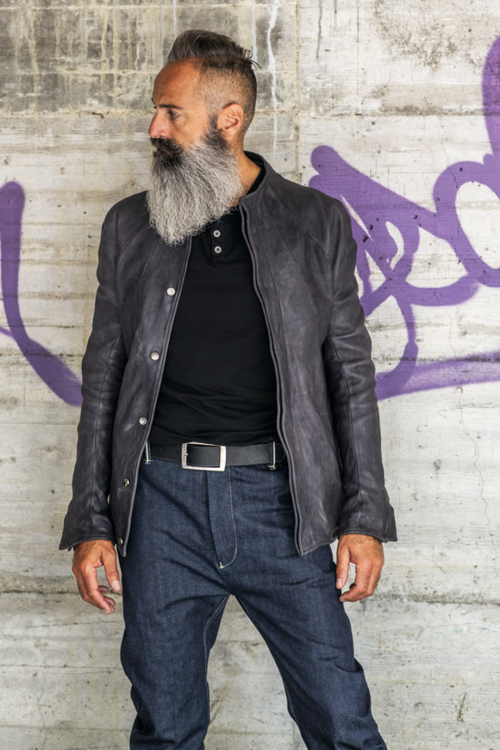 BUFFALO LEATHER HIGH COLLAR MOTO LINED PMT-2 BLACK EDITION