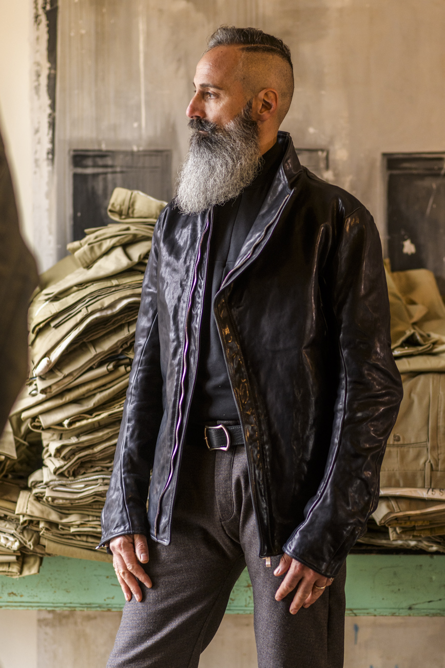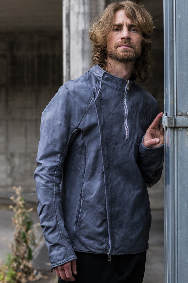 HORSE LEATHER HI-COLLAR CARVED ZIP BLOUSON LINED JB-9