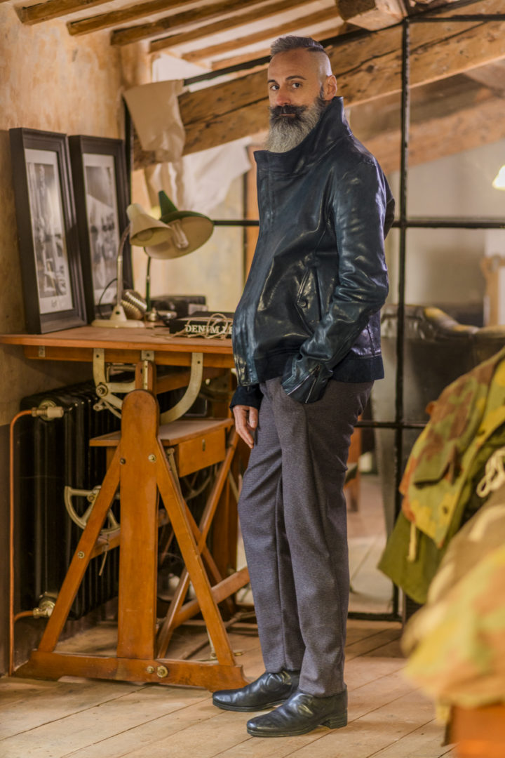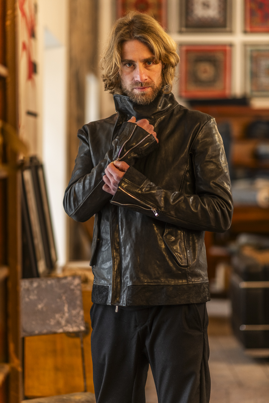 HORSE LEATHER HIGH COLLAR MOTO LINED PMT-2 BLACK EDITION