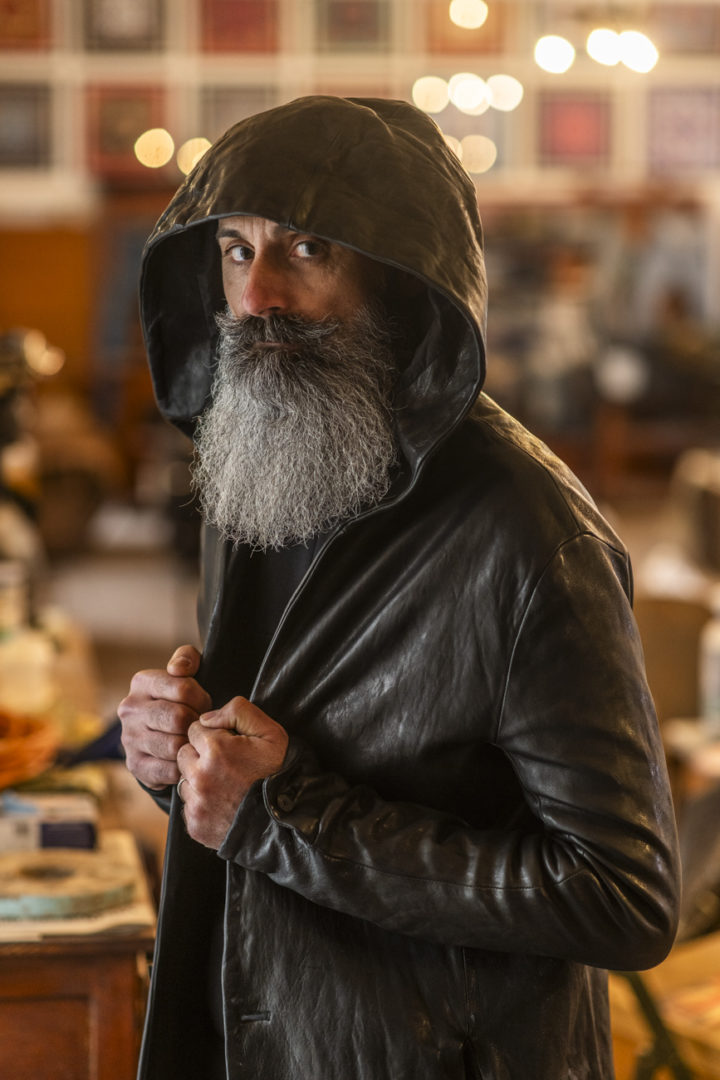 BUFFALO LEATHER DOUBLE BREAST MOTO COAT LINED JCP-3S WITH SHEARLING HOOD