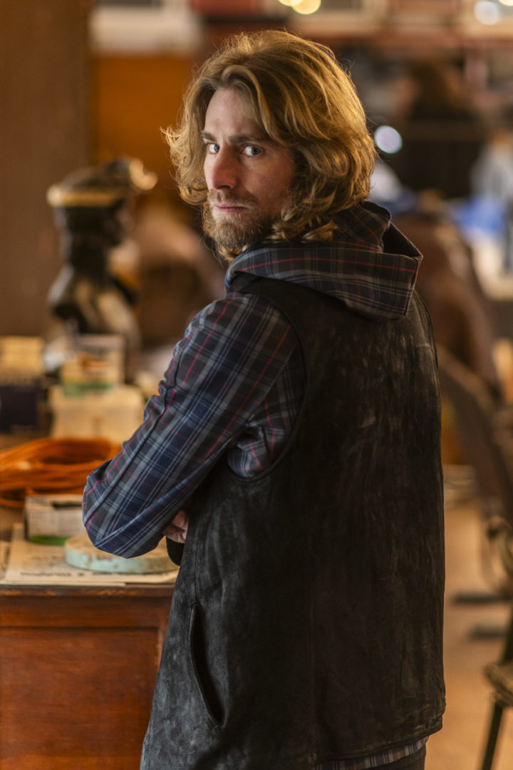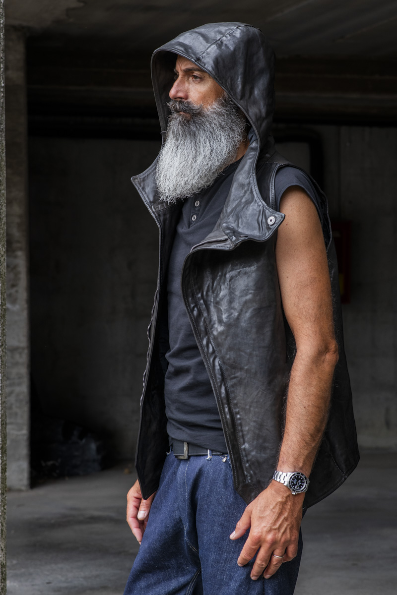 HORSE LEATHER PEAKED LAPEL VEST