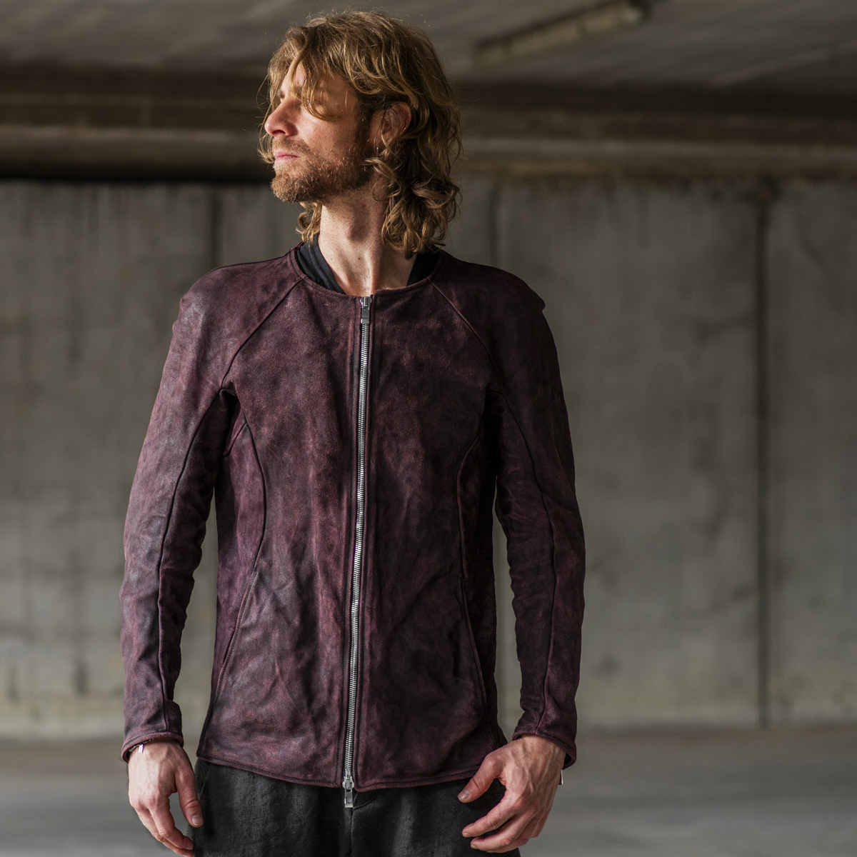 BABY CALF LEATHER HI-COLLAR CARVED ZIP BLOUSON LINED JB-9
