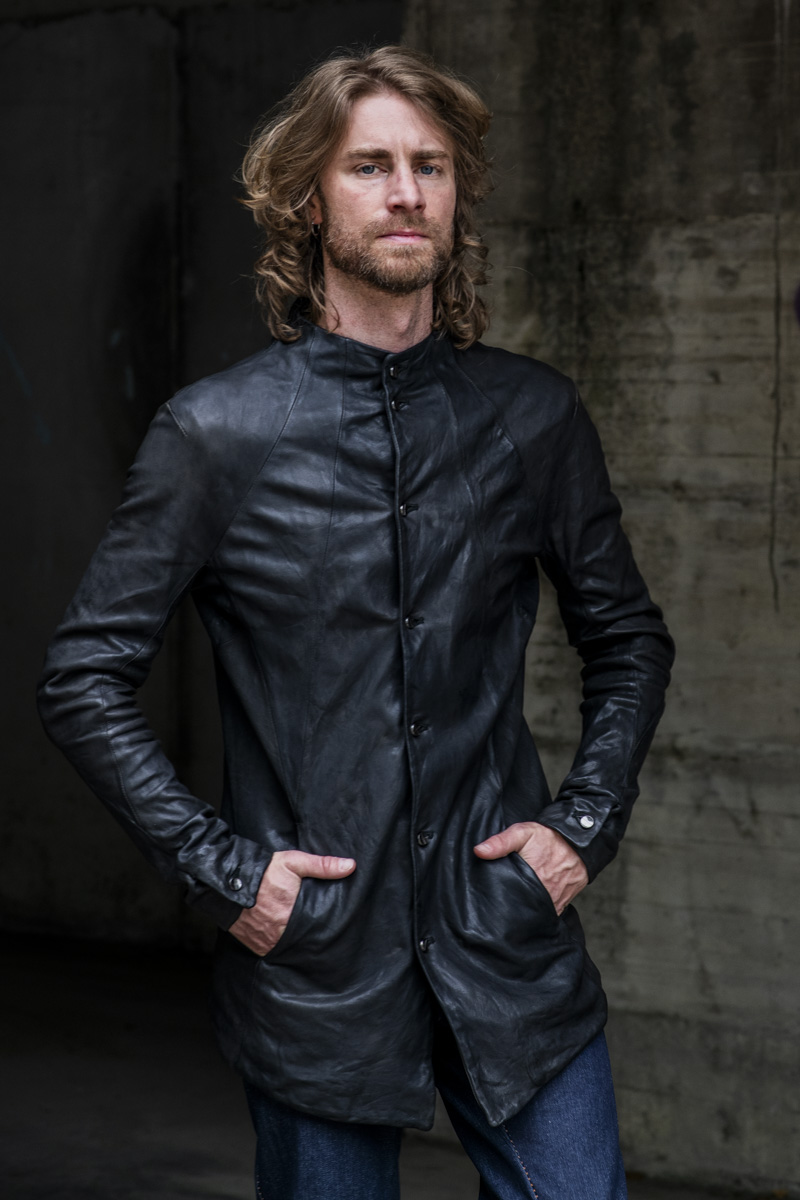 SHEEP LEATHER NO COLLAR DROP SHOULDER SHIRT LINED DS-1Z BLACK EDITION